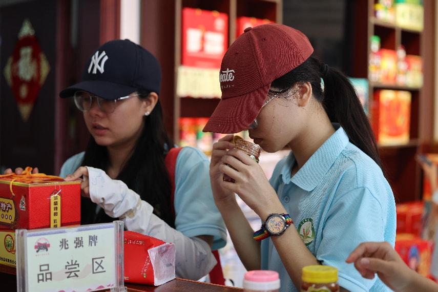 圖為實踐團成員品嘗辣椒產品。卜旭佳供圖