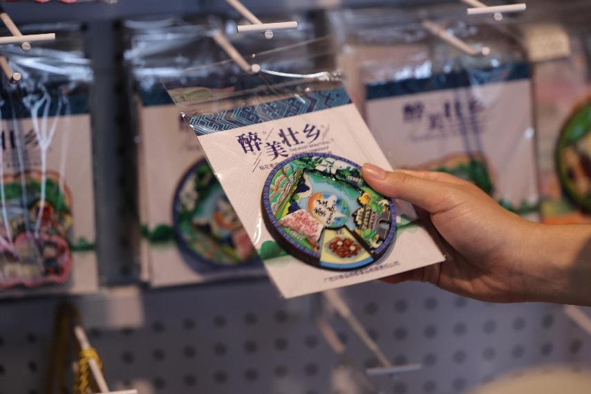 在產品展示區,實踐團成員逐一查看各類辣椒制品的包裝標識與生產信息。展柜內,標注“非遺的味道”的天等指天椒鮮紅飽滿,旁邊陳列著各種味道的辣椒醬采用精美的包裝,瓶身貼有穿著壯族織錦的人物形象。據形象店店員介紹:“這些產品從原料種植到加工銷售,均遵循標準化流程。目前當地已建立多個標準化種植基地,帶動全縣發展辣椒種植產業。”
