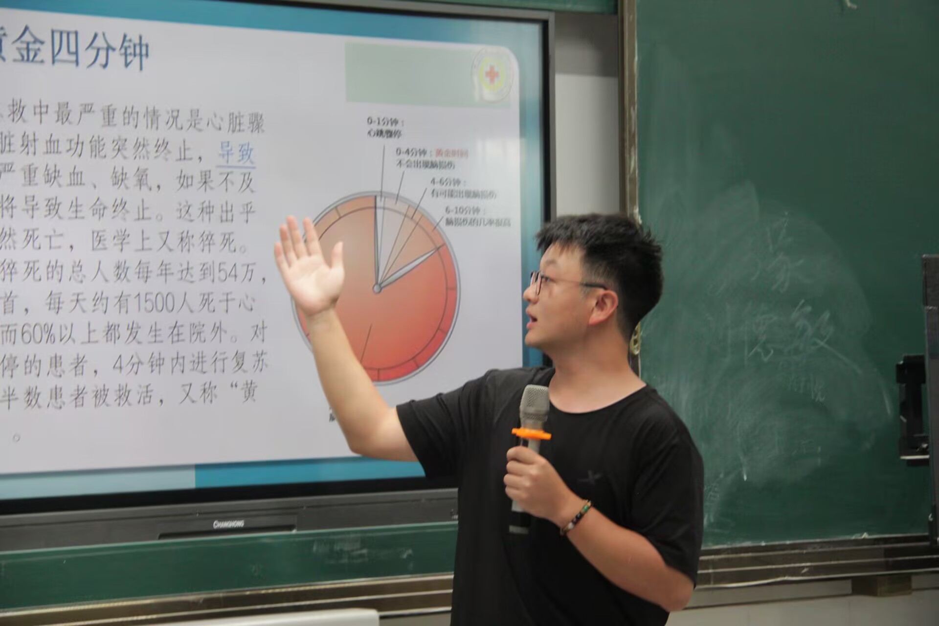 活動中,志愿者首先圍繞“黃金4分鐘”展開講解,明確心臟驟停后的最佳搶救窗口期及其重要性,結合臨床案例闡述延誤搶救可能導致的不可逆后果,使學生深刻認識到及時施救的關鍵意義。