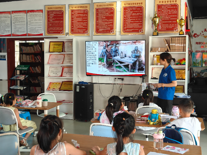 圖為實(shí)踐團(tuán)成員為孩子們宣講江津區(qū)紅色歷史文化。龔由蕓 攝