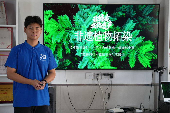 圖為實(shí)踐團(tuán)成員為孩子科普非遺拓染的課堂現(xiàn)場(chǎng)。龔由蕓 攝