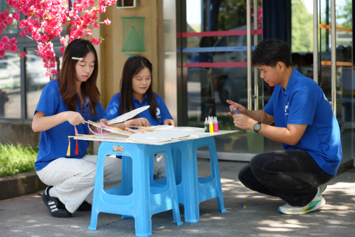 圖為實(shí)踐團(tuán)為漆扇制作課做材料準(zhǔn)備。龔由蕓 攝