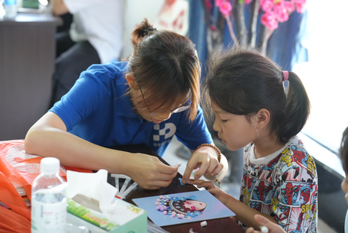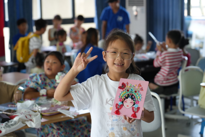 圖為拓染體驗(yàn)課上小女孩綻放笑容的瞬間。龔由蕓 攝
