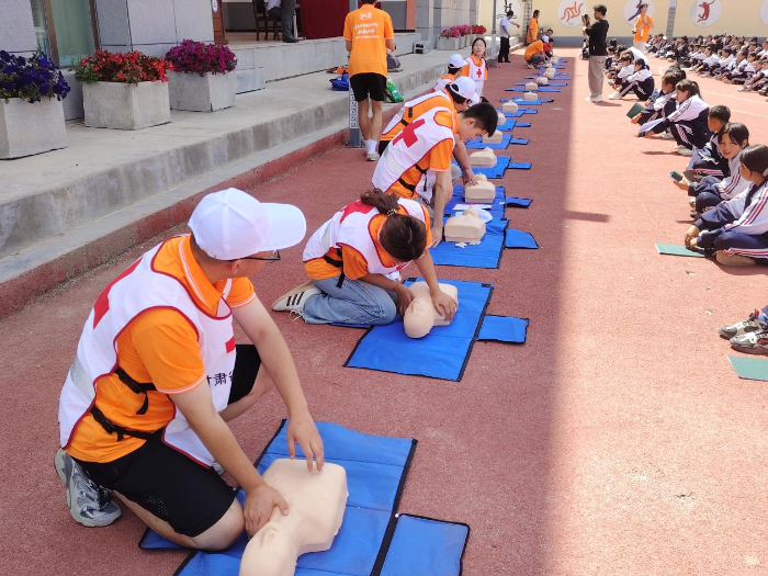專題講座:解讀“三救三獻(xiàn)”,筑牢生命防線上午10時(shí),團(tuán)隊(duì)在學(xué)校操場(chǎng)為580余名師生開展活動(dòng)。指導(dǎo)老師郭愛(ài)軍首先以專題講座形式對(duì)紅十字會(huì)“三救三獻(xiàn)”職能進(jìn)行解讀,清晰介紹了應(yīng)急救援、應(yīng)急救護(hù)、人道救助及無(wú)償獻(xiàn)血、捐獻(xiàn)造血干細(xì)胞、捐獻(xiàn)人體器官等核心內(nèi)容;隨后帶來(lái)“放假第一課”急救安全教育,郭老師結(jié)合校園及生活中的常見(jiàn)意外場(chǎng)景,生動(dòng)講解了突發(fā)狀況下的應(yīng)急處理原則,為師生們奠定了堅(jiān)實(shí)的理論基礎(chǔ)。