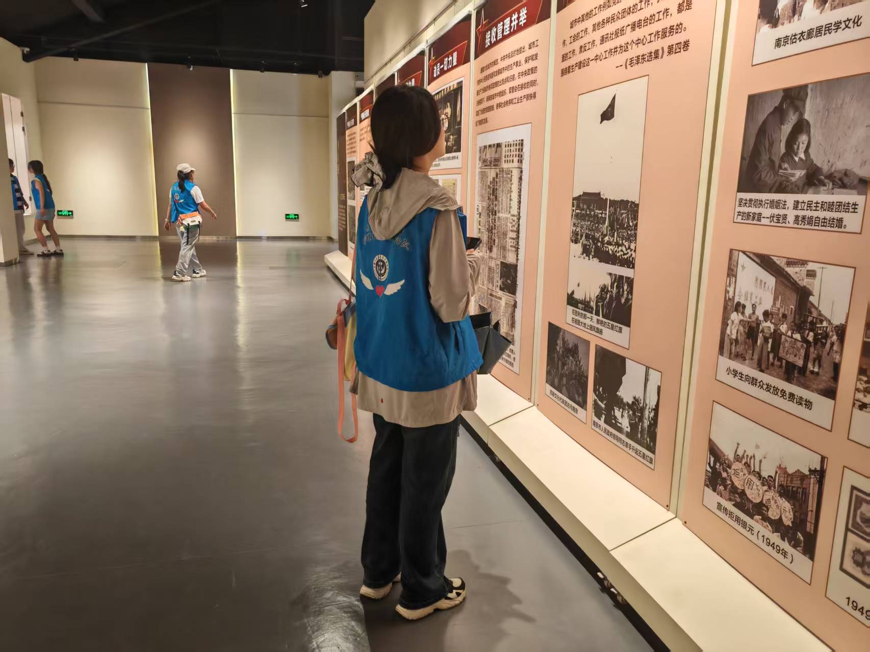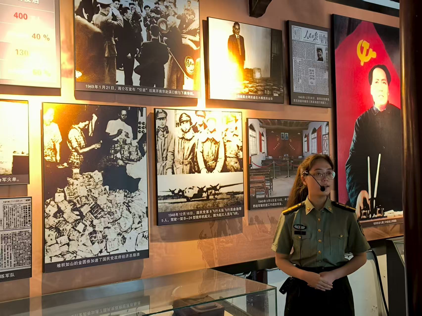 在陳列館內,豐富的歷史文物和詳實的圖文資料生動再現了渡江戰役的全過程。從作戰地圖、電報手稿到戰士們使用過的武器、生活用品,每一件展品都承載著一段感人的故事。實踐團成員們不時駐足觀看,仔細閱讀展品介紹,相互交流心得體會。“這些珍貴的文物讓我真切感受到了革命先輩們的艱辛與不易,他們為了理想信念,不惜犧牲一切,這種精神值得我們永遠學習。”實踐團成員張琛說道。