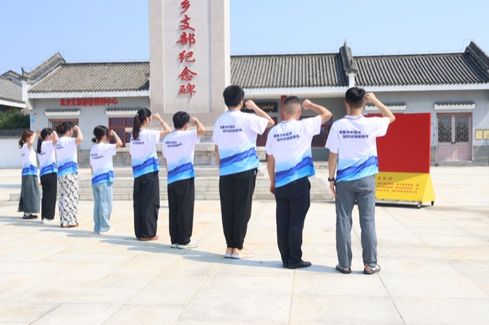 參觀結(jié)束后,實(shí)踐團(tuán)在紀(jì)念碑前舉行入黨誓詞宣讀儀式。由實(shí)踐團(tuán)成員胡媛媛領(lǐng)誓,新黨員莊嚴(yán)宣誓,老黨員重溫誓詞。“誓詞里的‘為人民服務(wù)’,與崔筱齋創(chuàng)建農(nóng)會(huì)時(shí)‘護(hù)民安’的初心一脈相承,這正是紅色精神的延續(xù)。”講解員望著宣誓的隊(duì)伍感慨道,嘹亮的誓言與風(fēng)中樹葉的沙沙聲交織,激勵(lì)著每一位成員不忘初心,砥礪前行。