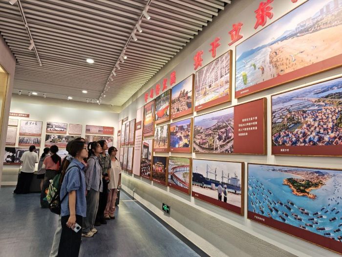7月5日,實踐隊首站來到谷文昌紀念館。館內通過實物陳列、圖文展板、場景復原等方式,生動展現了谷文昌同志帶領東山縣群眾戰勝風沙、根治旱澇,讓荒島變綠洲的感人事跡。跟隨講解員的細致講解,隊員們深入了解了谷文昌“上戰禿頭山,下戰飛沙灘”的奮斗歷程,以及他“不治服風沙,就讓風沙把我埋掉”的堅定誓言。