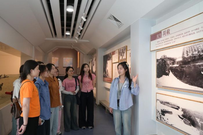 實踐隊師生結合館內的雕像、文獻資料等,輪流分享自己熟知的“谷公”故事。有隊員講述了谷文昌為解決群眾飲水難題,親自帶領技術員勘探水源的經歷;也有隊員提及他始終堅守“不拿群眾一針一線”的廉潔作風,現場交流氛圍濃厚。