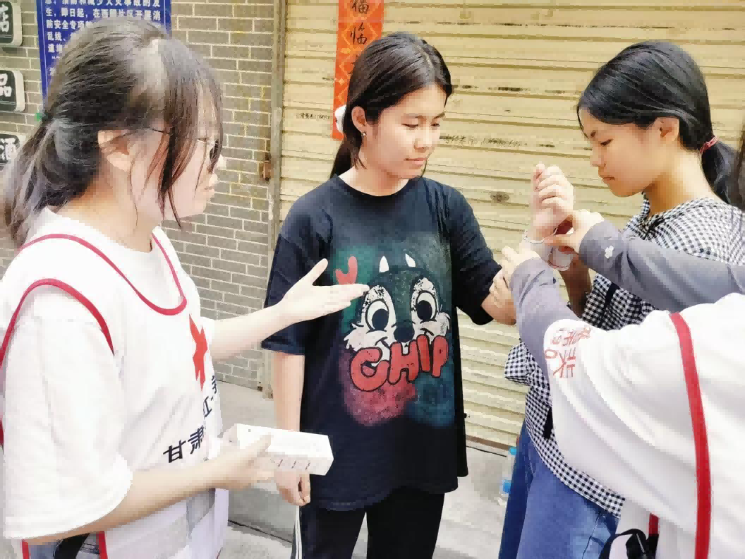化學(xué)專業(yè)學(xué)生將實驗室的嚴(yán)謹(jǐn)帶入急救教學(xué),用沙畫演示血液凝固原理時,同步講解止血包扎的操作要點,讓抽象的化學(xué)知識成為理解急救技能的“鑰匙”;地理專業(yè)學(xué)生以蘭州黃河地貌為課堂,在“沙漠尋寶地理挑戰(zhàn)”活動中,既教會孩子們識別地形特征,又融入“野外受傷應(yīng)急處理”知識,實現(xiàn)了學(xué)科教育與安全守護的有機融合;思想政治教育專業(yè)學(xué)生為設(shè)計“民族團結(jié)+紅十字精神”課程,走訪社區(qū)11個民族的長者,將各民族互助故事與“三救”理念結(jié)合,讓“人道、博愛、奉獻”精神在文化交融中更具感染力。