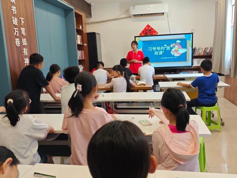實踐隊針對村內中小學生學科短板開設“一對一輔導專班”,創新融合思政元素:在數學運算中解析惠農政策邏輯,于英語教學滲透紅色詞匯翻譯,讓語文閱讀材料變身鄉村振興案例庫。隊員們結合《習近平與大學生朋友們》系列報道,開展“每日一課”主題宣講,將習近平新時代中國特色社會主義思想轉化為青少年聽得懂、記得住的“鄉土語言”。“原來政治課本里的‘共同富裕’就在我們村!”一名初中生在課后感慨。通過14天精準助學,隊員們累計解決學科疑難問題200余個,助力鄉村教育從“輸血”轉向“造血”。