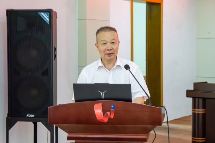 圖為江西盤古山鎢業公司鐘益民副總經理正在為大家歡迎致辭。
