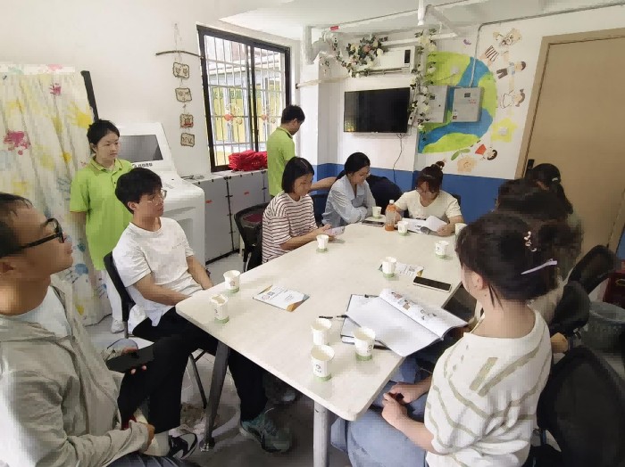 隨后成員們見到了服務對象。初見的他們,年齡身形各異,既有稚童也有成人,舉止間帶著旁人眼中的“不合邏輯”:莫名的奇怪動作、突發的情緒亢奮?晒ぷ魅藛T一句“內心都是五六歲的孩子”讓成員們卸下畏懼——但如何讀懂他們的需求、如何在短暫的時間里做更多的事?難題在前,責任已悄然落肩。