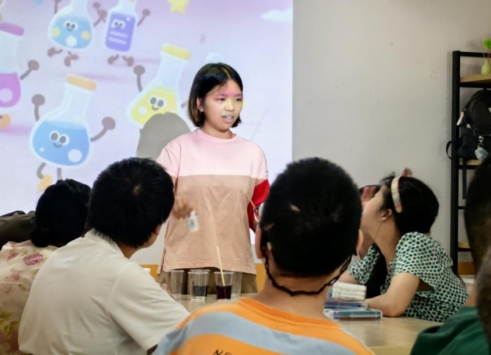 手語課上,學員們專注地學習日常手語表達,課后還會用剛學會的手勢向志愿者們比劃"謝謝";科學實驗課上,志愿者與學員們一起揭秘神奇的科學魔法;繪畫課上,志愿者帶著學員們用彩筆一筆一筆勾勒出五彩斑斕的內心世界;黨建課上,紅色的信仰種子輕輕播撒。