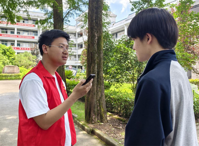 圖為隊員在向屯溪二中的學生進行采訪。程希恩 供圖