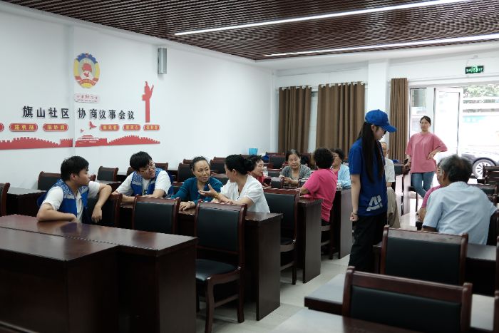 首站來到了徐州大吳旗山社區和青村社區黨群服務站,實踐隊成員們帶來了豐富多樣的科技AI和智能機器人展示。我們擺放智能機器人,能走路的、能做動作。隊員們耐心地向社區居民講解機器人的工作原理,演示AI技術在生活中的應用,比如智能家電控制、人臉識別等。居民們聽得津津有味,紛紛上前與機器人互動。一位大爺感慨道:“以前總覺得這些高科技離我們很遠,今天一看,原來就在我們身邊啊,真是長見識了!”