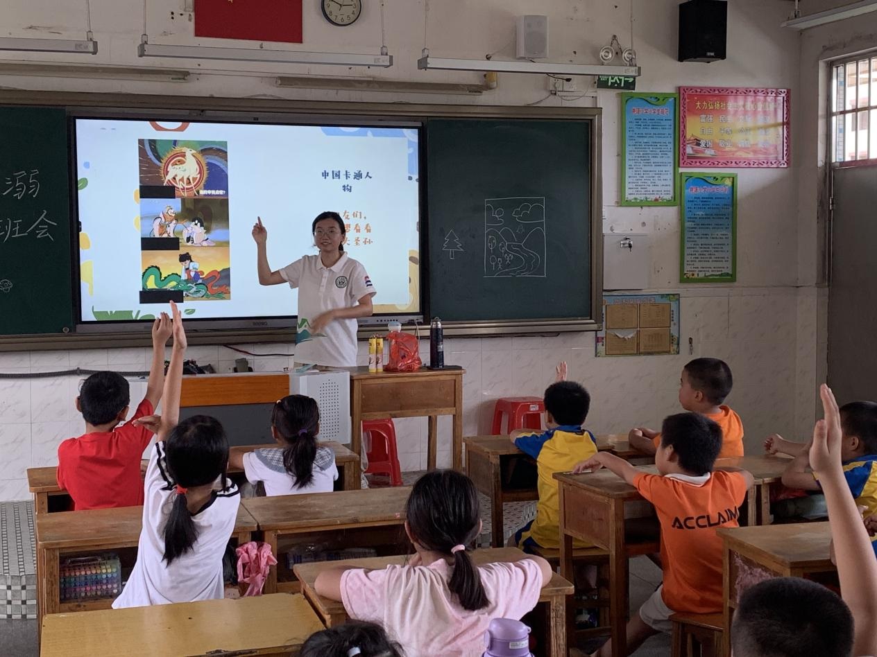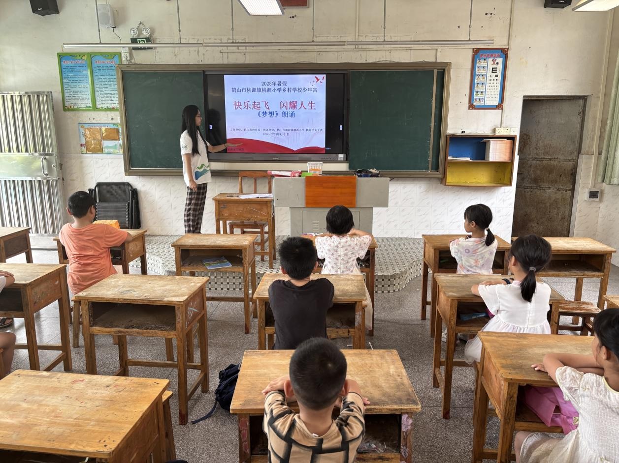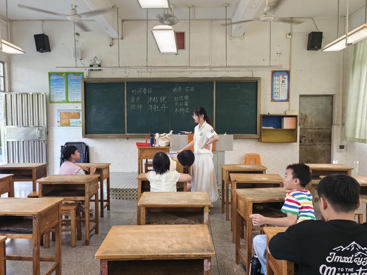 為深入貫徹國家《“十四五”鄉村教育振興行動計劃》中“推動優質教育資源下沉鄉村”的部署,響應共青團中央“三下鄉”社會實踐號召,2025年7月16日至7月23日,廣州新華學院中文系分身劇社突擊隊深入廣東省鶴山市桃源鎮桃源小學,開展了為期八天的“藝術侵潤童心”美育支教活動。盡管面臨臺風和暴雨的雙重考驗,團隊仍以靈活調整和加倍熱情,通過系統化的書法、手工、話劇、繪畫、朗誦藝術課程設計,為孩子們帶來了一場難忘的,充滿韌性、創意與溫情的美育之旅。