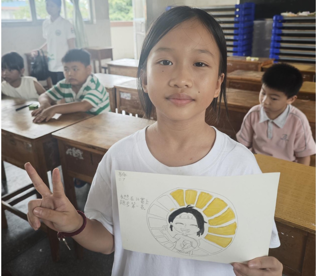 繪畫課上,孩子們以“夢想與自畫像”為主題展開創作。老師引導孩子們先在草稿紙上勾勒自己的模樣——扎著馬尾辮的女孩、戴著眼鏡的男孩,再用星星、翅膀等元素點綴背景,表達“想成為畫家”“想飛向太空”的夢想。課堂上,彩鉛與水彩筆在畫紙上摩擦的沙沙聲此起彼伏。