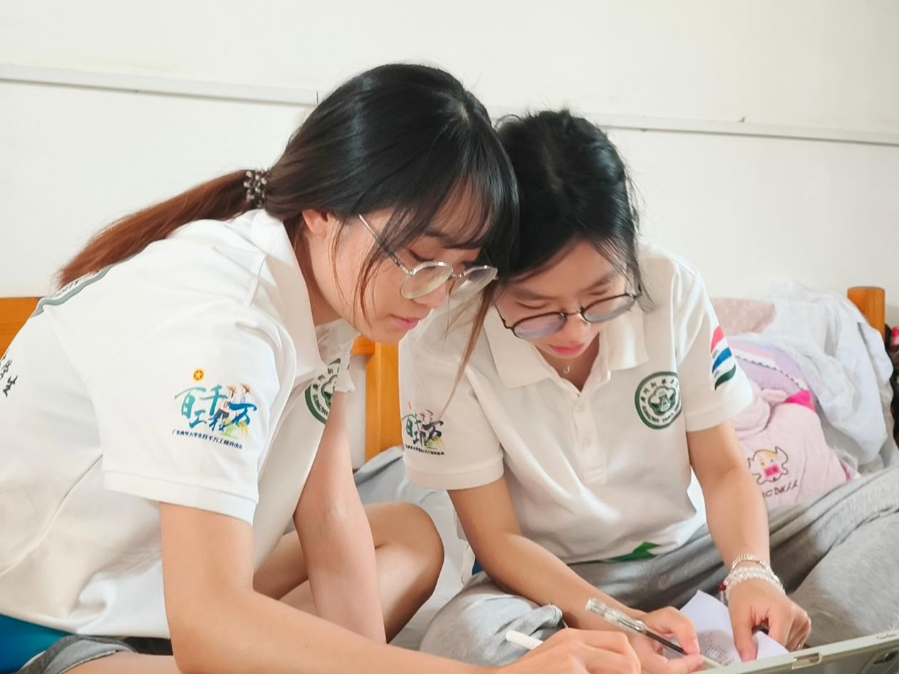 (圖為兩位話劇老師在宿舍商討教學方案。 廖羽嫣 供圖)