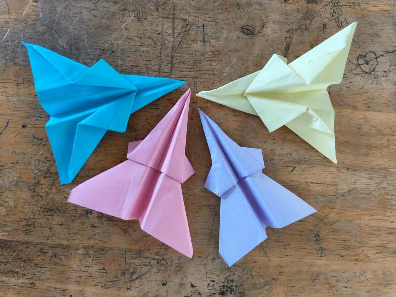 手工教室內,彩色折紙在老師與孩子的手上翻飛,一折一翻間流露的是熱愛,一談一笑間展現的是歡喜。課桌上依次呈現的是靈動的“飛機”“投籃機”“搖擺小人”……