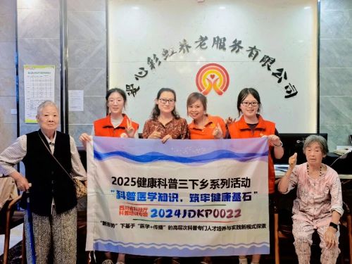 (通訊員:蔣祺、王嬌)為提升老年群體健康素養,構建精準健康科普服務體系,7月10日,川北醫學院醫學影像學院赴貴州遵義“長征醫影路,仁心映赤途”青春筑夢團走進愛心彩虹養老院,開展“科普醫學知識,筑牢健康基石”三下鄉健康科普系列活動(項目編號:2024JDKP0022),通過專業內容輸出與互動服務形式,為老年人提供了系統性健康服務。活動內容覆蓋高血壓防治、肝病防控等健康領域,活動形式包含問卷調查與知識問答環節,獲服務對象高度認可。