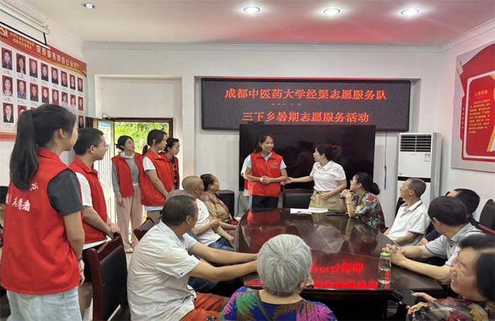 2025年7月7日-10日,成都中醫藥大學針灸推拿學院經渠志愿服務隊10名志愿者齊聚江油市,深入社區、學校、光榮院,開展以“弘揚中醫文化,服務基層健康”為主題的三下鄉志愿服務。通過知識宣講、互動交流、艾灸推拿等特色服務,調研基層醫療需求,普及中醫知識,將中醫藥文化融入實踐,推動中醫養生理念深入人心。此次活動彰顯了青年學子的責任擔當,助力中醫藥文化傳承,為健康中國建設貢獻青春力量。