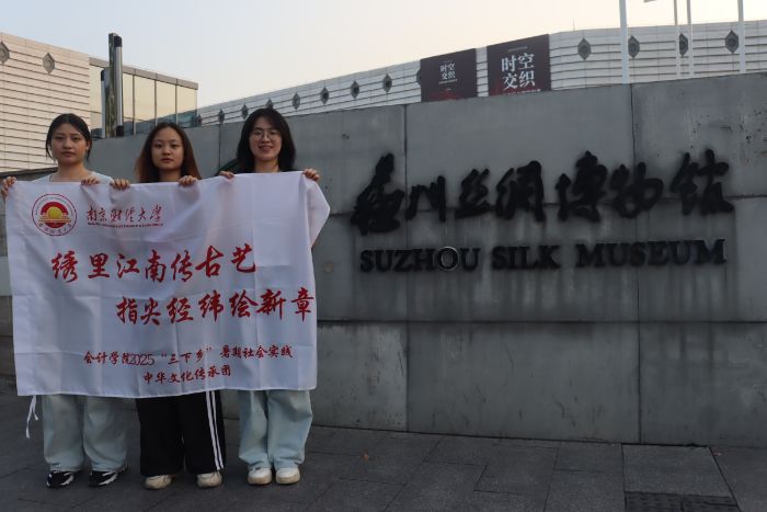 2025年7月16日至7月18日,南京財(cái)經(jīng)大學(xué)會(huì)計(jì)學(xué)院“繡里江南傳古藝,指尖經(jīng)緯繪新章”實(shí)踐團(tuán)隊(duì),走進(jìn)了歷史悠久的蘇州絲綢博物館,開展了為期三天的社會(huì)實(shí)踐活動(dòng)。此次活動(dòng)旨在深入了解并傳承中國傳統(tǒng)的蘇繡文化,通過實(shí)地考察、志愿服務(wù)和文化宣傳等形式,讓更多人感受到蘇繡這一非物質(zhì)文化遺產(chǎn)的魅力。
