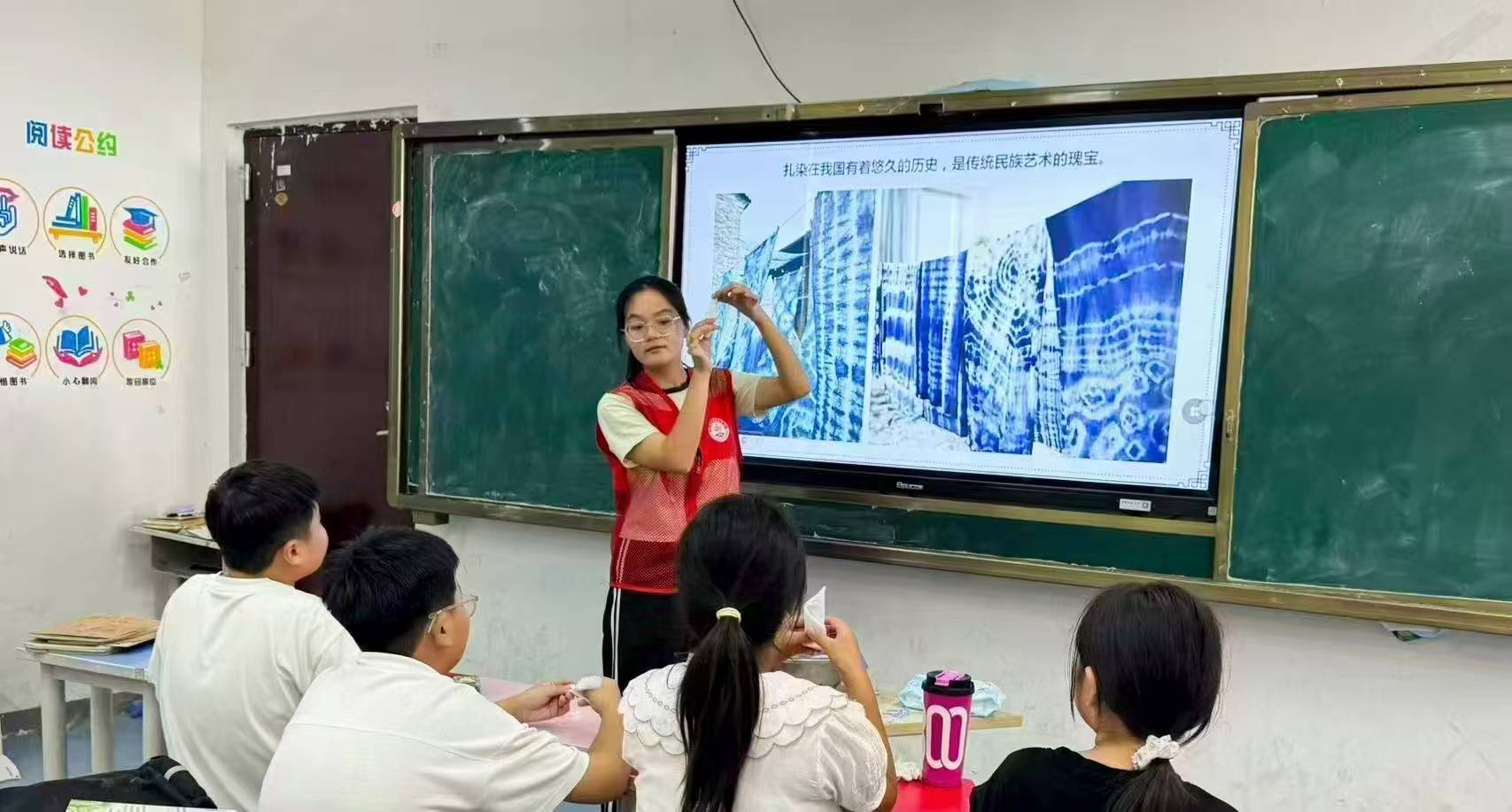 7月17日,青禾童學支教隊的老師們,在陳樓小學的課堂上為學生們開展了別開生面的扎染教學活動,為鄉村學生打開非遺藝術新窗口。