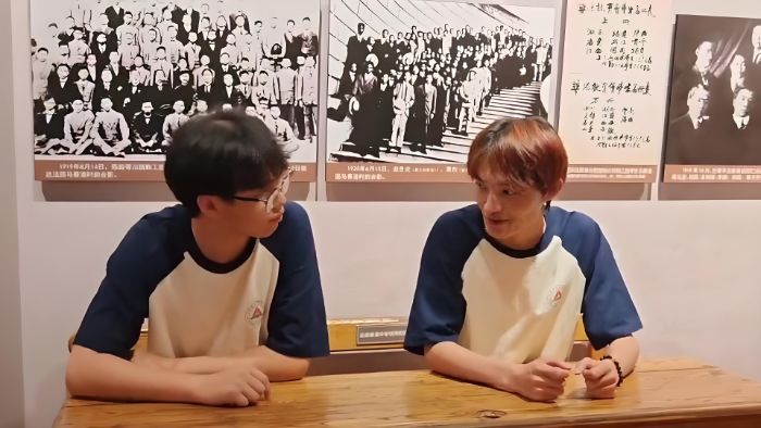 (圖為冀憶領(lǐng)航星火織夢實(shí)踐團(tuán)在留法勤工儉學(xué)運(yùn)動紀(jì)念館內(nèi)認(rèn)真討論歷史)
