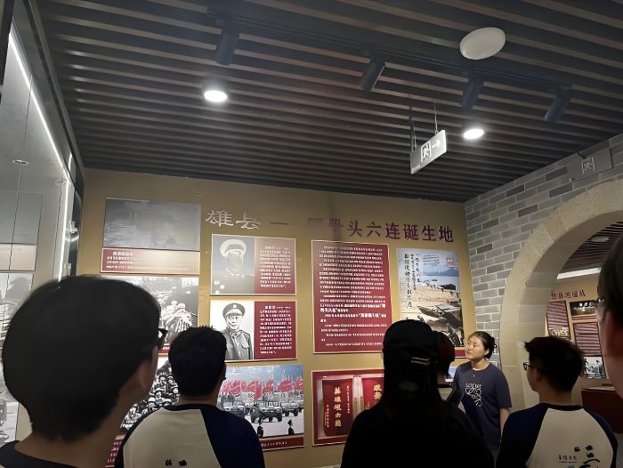 (圖為冀憶領(lǐng)航星火織夢實(shí)踐團(tuán)聽取講解員講解鐵骨頭六連的故事)