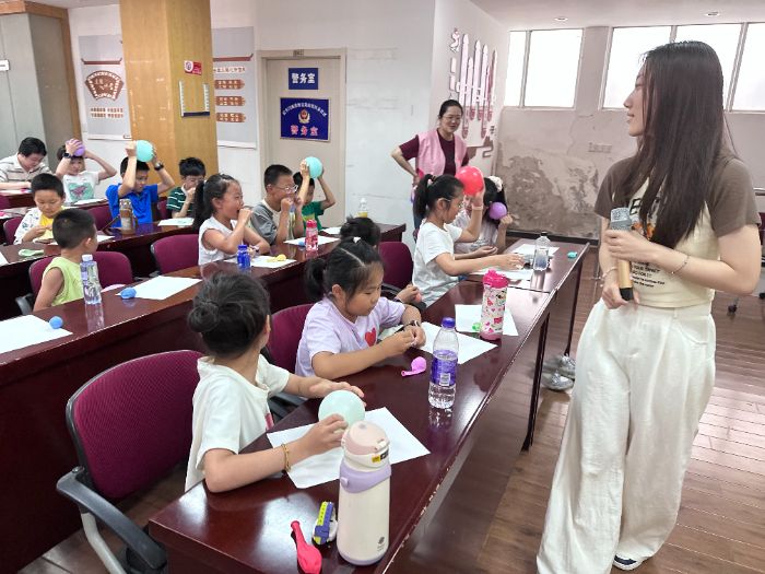 7月5日上午,當實踐隊員推開富貴山社區(qū)活動室的門,迎接他們的是一張張稚嫩而充滿好奇的臉龐。活動現場,一場關于星空、古詩與未來的對話即將開始。