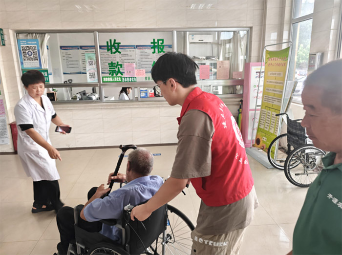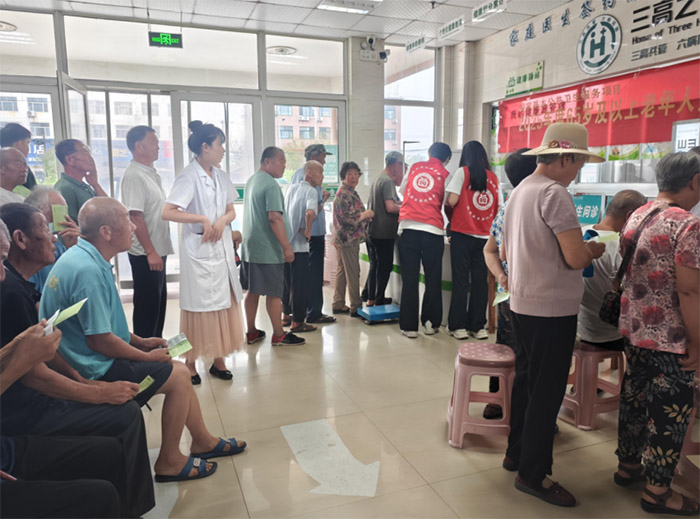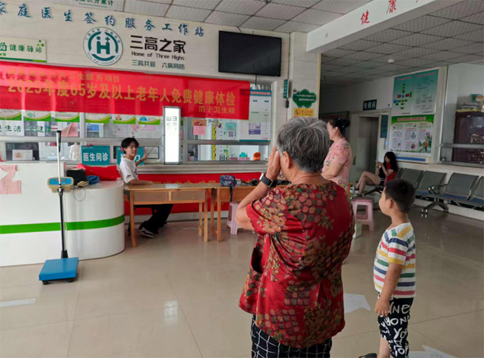 活動當天,泊子衛生院里人頭攢動,志愿服務隊早早到達場地,設置了身高體重測量、血壓測量、血糖檢測、視力篩查等多個服務臺。老人們在志愿者的引導下有序排隊,從信息登記到各項檢查。