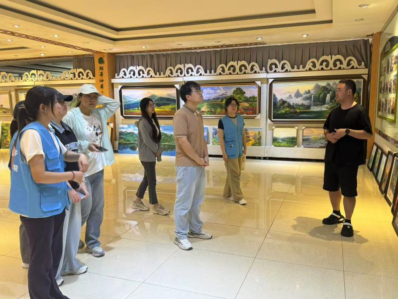 隨后,團隊成員共同走進了綠澤畫院,在一幅幅的油畫、水彩畫中體會達尼畫家村的蛻變歷史,通過參觀,隊員們更深刻了解了達尼畫家村的發展歷程,了解了街道如何推動一張油畫到百花齊放的經驗做法。同時綠澤畫院也可以吸引外地游客前來參觀,這也就促進了當地旅游業的發展。