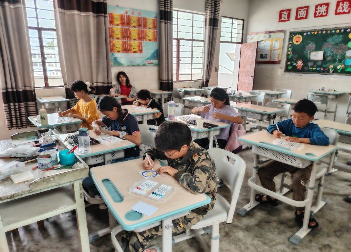 在以納西族古老文字東巴文為背景設(shè)置的東巴文猜猜樂(lè)環(huán)節(jié)。孩子們熱情高漲、爭(zhēng)相搶答,實(shí)踐隊(duì)隊(duì)員借圖畫拆解文字寓意,助力孩子在歡笑中識(shí)“山”“水”等字符,感受東巴文獨(dú)特魅力,悄然播撒民族文化傳承種子。