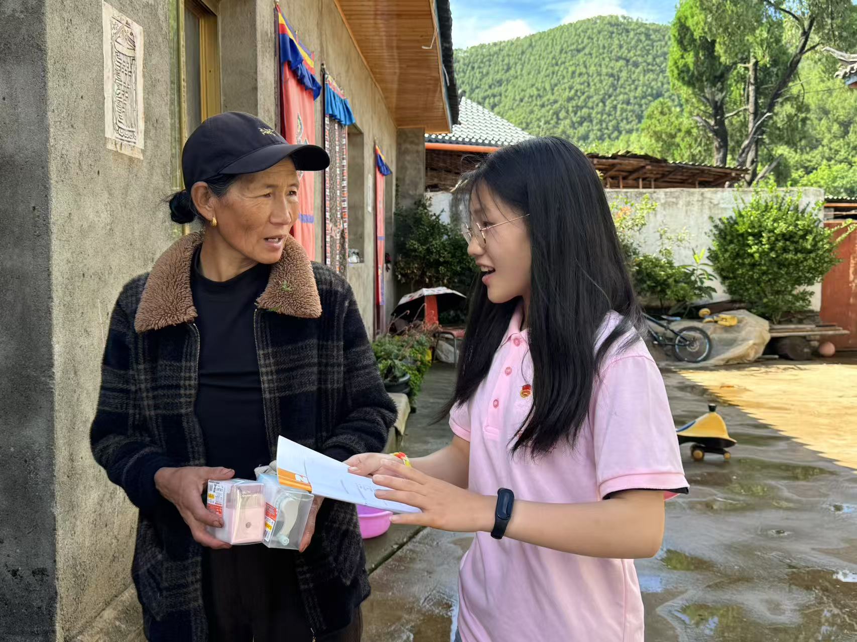 隊員們抵達木垮村后,踏著青石板路走進摩梭族聚居區,開始對當地獨特的文化環境展開考察。沿途,依山而建的木楞房錯落有致,屋頂的青瓦在陽光下泛著微光,身著青藍色傳統服飾的村民往來穿梭,隊員們一邊用相機拍下這些場景,一邊在筆記本上詳細記錄房屋的榫卯結構、服飾上的銀飾紋樣等摩梭文化特征。