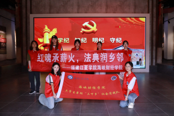 為深入學習貫徹習近平法治思想和習近平總書記關于青年工作的重要思想,2025年7月13日,福建江夏學院海峽財經學院“紅魂承薪火,法典潤鄉鄰”玉融紅色普法實踐隊走進福清市漈頭村開展暑期“三下鄉”活動。隊員們腳踩泥土、心懷赤誠,走入基層,在紅色基因傳承與農村普法宣傳實踐中,讓青春力量扎根基層沃土。