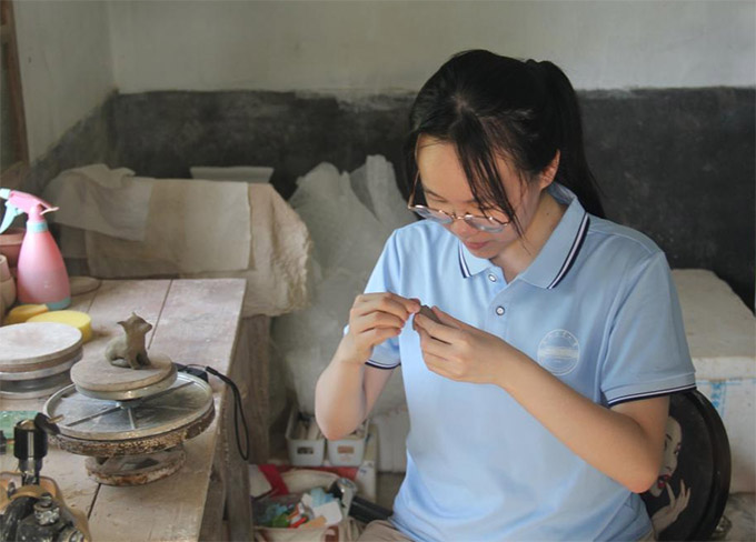 瓷藝園里尋文脈,白瓷廠里探傳承。團隊來到石鼓村白瓷廠,考察從原料加工到成品產出的完整產業鏈,并與當地白瓷非遺傳承人賴世杰老師圍繞技藝傳承、產品創新展開交流。傳承人介紹了白瓷從古代海上絲綢之路外銷瓷到當代文創產品的歷史脈絡,分享了將傳統紋樣與現代工藝結合的做法,這份對“溫潤如脂”傳統工藝標準的堅守和年輕化傳播的嘗試,讓成員們感觸頗深。隨后,傳承人帶我們參觀了車間,讓我們直觀感受了白瓷的制作流程,也展示了不少精妙絕倫的成品。為助力白瓷現代化轉型,可引入3D打印技術輔助復雜紋樣初步成型,再由匠人手工修坯,兼顧效率與手工溫度;同時開發茶具、香薰瓶等貼合現代生活的產品,借助電商直播推廣,吸引年輕消費者。