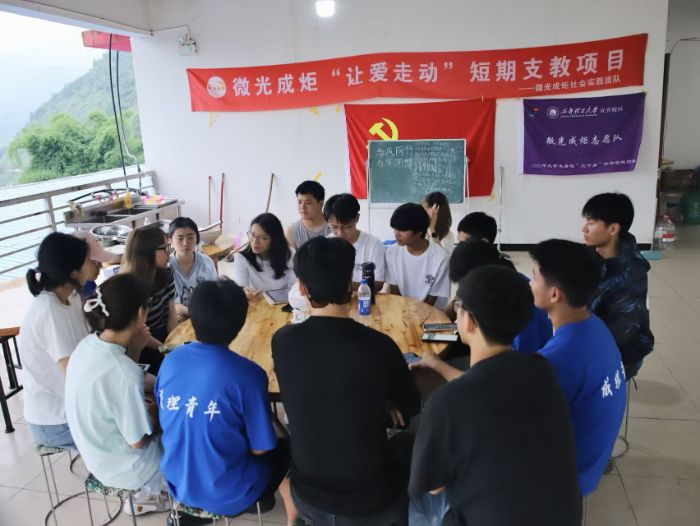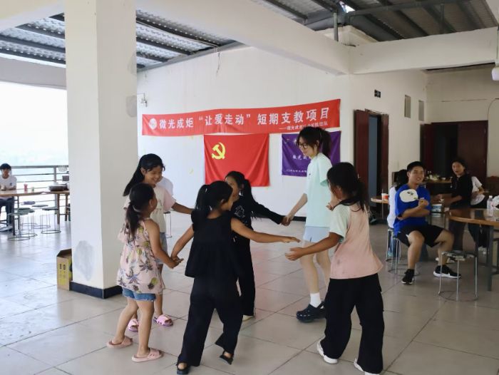 夜幕低垂,支教團隊圍坐在校園一隅,借著星光召開每日例會。成員們欣喜地發現,孩子們眼中閃爍的求知光芒和踴躍的課堂表現,讓每位成員都深受觸動。經過熱烈討論,大家一致決定在后續課程中融入更多互動元素。白天的體育課上,“與風同行、與樂同頻”的主題活動讓孩子們在搶凳子、跳大繩中盡情歡笑;兩彈一星課堂上,老一輩科學家的感人事跡深深打動了每個孩子的心靈;勞動實踐中,孩子們通過教室大掃除等親手勞作,體驗著維護整潔環境的責任感和協作的成就感。