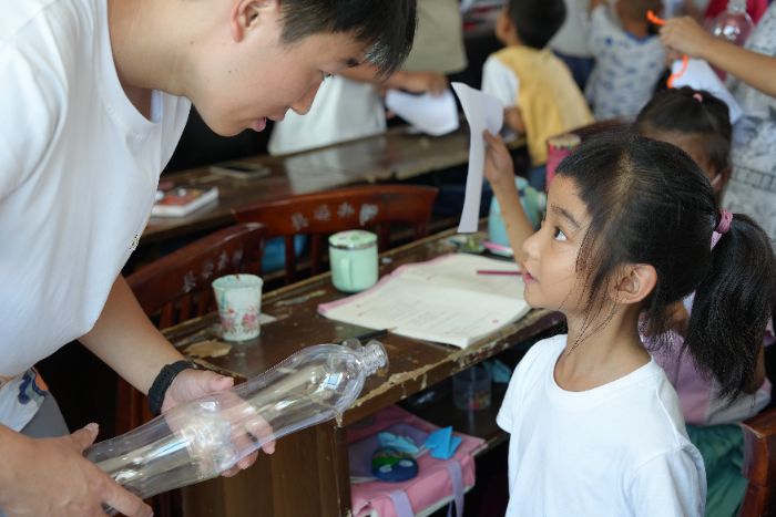 7月24日,隨著結營儀式的舉行,支教活動畫上圓滿句號。儀式現場,孩子們用自制的漆扇與手工藝品贈送給老師們,用童稚的聲音唱起剛剛學會的古詩詞與兒歌。掌聲與淚水交織中,一幅幅課堂剪影與笑臉定格成永不褪色的回憶。
