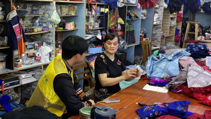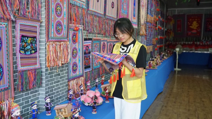 圖為團(tuán)隊(duì)成員參觀納福彩繡工坊。郭亮 供圖