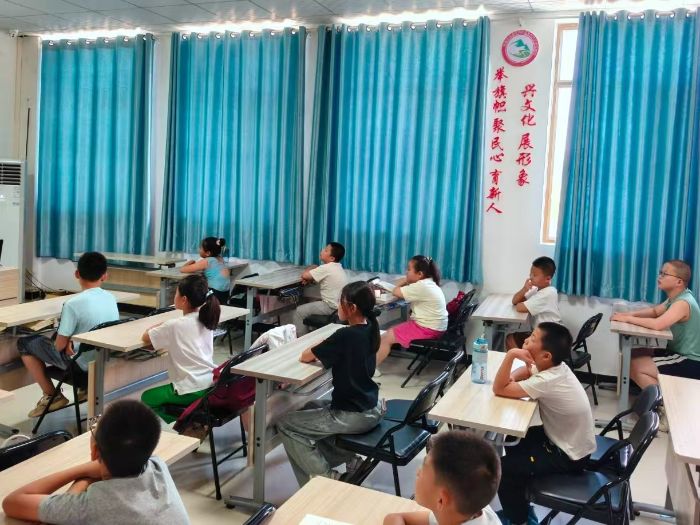 圖為學(xué)苑社區(qū)的孩子們認真觀看紅色電影 何潔攝