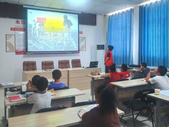 薪火相傳實踐團首先向孩子們詳細介紹了軍墾老兵的事跡,讓孩子們深入了解軍墾老兵在艱苦環(huán)境中無私奉獻、艱苦奮斗的崇高精神,引導(dǎo)他們在心中厚植愛國情懷與奉獻意識。隨后,實踐團組織孩子們觀看了宣傳片《沙海老兵》。該宣傳片以沙海老兵的故事為主線,展現(xiàn)了老兵們在荒蕪沙海中艱苦奮斗、無私奉獻的壯麗篇章。