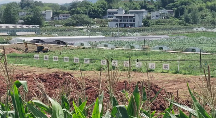 代表還介紹到:“我們還專門整了一套專門的方法來處理那些生產廢棄物,現在95%的農業廢棄物都能循環利用。,本地還不允許鋪那些人工的草皮,用的都是本地的野花野草嘞。”此外,喜觀村也在持續的發展有關蔬菜科技的創新,小隊在遠處的田地中發現了“蔬菜科技創新,助力產業發展”的標語。“你們看那些遠處的棚子都是專門裝的有高科技嘞,能時刻檢測里面的溫度啊、濕度啊,還能在植物出現狀況的時候給你顯示解決的方法呢”代表介紹到,“不僅如此,外面的人點進我們的鏈接就可以實時觀看大棚的情況,這樣也能促進大家了解并購買我們的這些蔬菜產品。”代表還向大家推薦了村里的番茄小鎮,還說著讓大家有空去體驗體驗。路過番茄小鎮,盛夏的番茄小鎮并沒有大家想象中的一片紅色果實,而是一片郁郁蔥蔥的綠色海洋。園中不少村民正在其中勞作,將剪下的枝葉與田間的雜草收集起來,再運到專門的堆肥區。這些“綠色垃圾”經過一定的處理就會變成優質的有機肥料。番茄小鎮也在通過精細的廢物資源化,無聲地踐行著低碳環保、可持續利用的生產模式,讓每一份資源都能物盡其用。