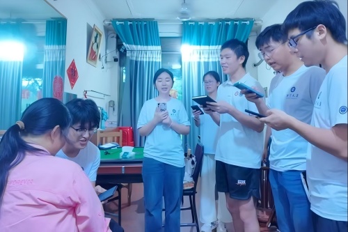 臨別之際,實踐團成員深情地唱起老歌《幸福不會從天降》。這旋律引發(fā)了余慧敏的共鳴,她也欣然分享了自己喜歡的歌曲,大家跟著一同清唱,歌聲傳遞著溫情與力量。