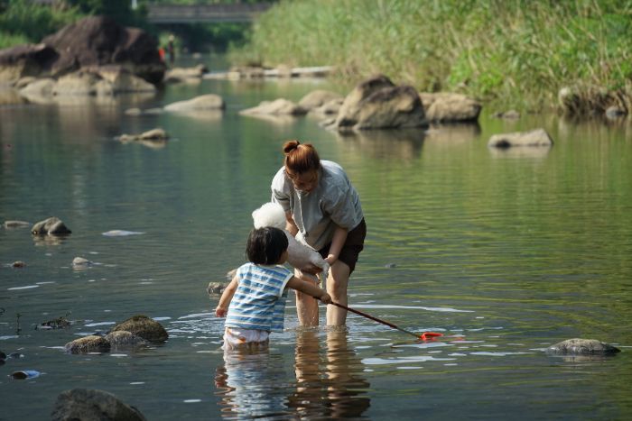 鄉(xiāng)村振興,人是關鍵。實踐團敏銳地將鏡頭轉向了當?shù)厝说纳钊粘Ec文化傳承。在塘田冰河古道,清澈見底的溪水潺潺流淌,成為炎炎夏日的清涼勝地。7月6日下午,實踐團跟隨呂田鎮(zhèn)團委委員葉淑貞來到這里。鏡頭對準了溯溪的人群,記錄下當?shù)鼐用窈陀慰驮谇鍥鱿墟覒蛲嫠5臍g樂瞬間。潺潺流水聲與人們的歡聲笑語交織在一起,構成了一幅生動的夏日消暑圖景,展現(xiàn)了鄉(xiāng)村生活的愜意與活力,也為“綠美廣東”生態(tài)建設增添了生動的注腳。