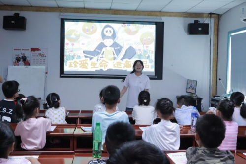 實踐課堂,筑牢安全防線 團隊成員深知安全是孩子們成長的基石,因此特別開設“防溺水教育”“禁毒教育”等實踐課程,為孩子們的健康成長保駕護航。防溺水教育中,真實案例剖析與生動視頻演示相結合,讓孩子們清晰認知溺水風險,學習自救與施救的正確方法。現場模擬演練更讓理論知識落地生根,孩子們在親身體驗中筑牢安全意識。禁毒教育課上,仿真毒品模型直觀展示毒品的偽裝性,團隊成員用通俗語言剖析毒品對個人、家庭與社會的多重危害,引導孩子們樹立“珍愛生命,遠離毒品”的堅定信念。課堂上,孩子們專注聆聽、積極互動,將防毒拒毒的意識深植于心。