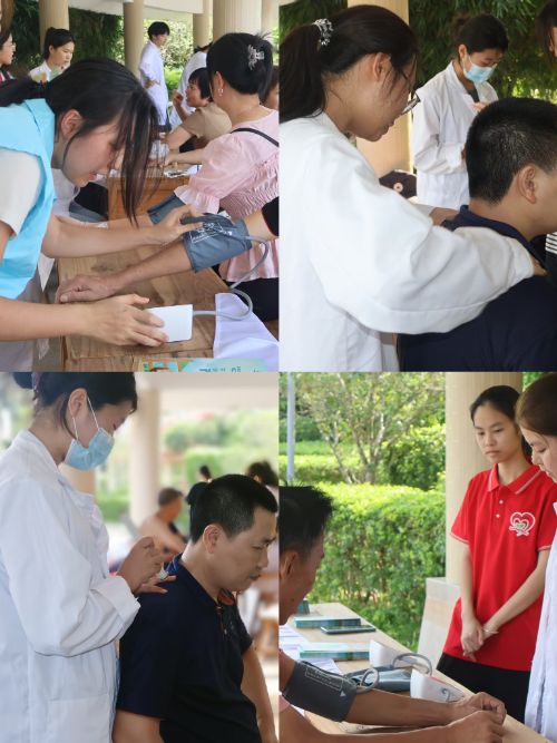 7月14日上午8點,太陽初升,傳音筑夢服務隊的隊員們早早地便在綠樹成蔭的勝前公園迅速搭建起“基礎醫療服務站點”。隊員們憑借專業所學以及下鄉前的基礎醫療服務培訓,為勝前村居民提供量血壓、貼耳穴、推拿按摩等服務。量血壓的隊員們仔細記錄數據,認真地給予每一位居民健康建議;貼耳穴的隊員們輕聲講解穴位功效,細致地給前來體驗的居民貼好耳穴貼;推拿隊員們手法嫻熟,用雙手幫助居民們緩解酸痛。在服務過程中,隊員同步宣傳國家教育資助政策,讓健康關懷與政策溫暖并行。