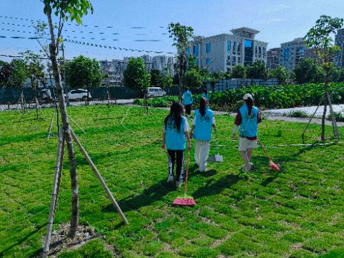 在居委街前,傳音筑夢服務隊另一小分隊身影活躍。隊員們手持工具,清掃街道落葉塵雜,助力街巷煥新,他們雖汗水濕背卻笑容明亮。俯身躬行,用勞動詮釋服務真諦,掃去塵埃,留下青年擔當印記。