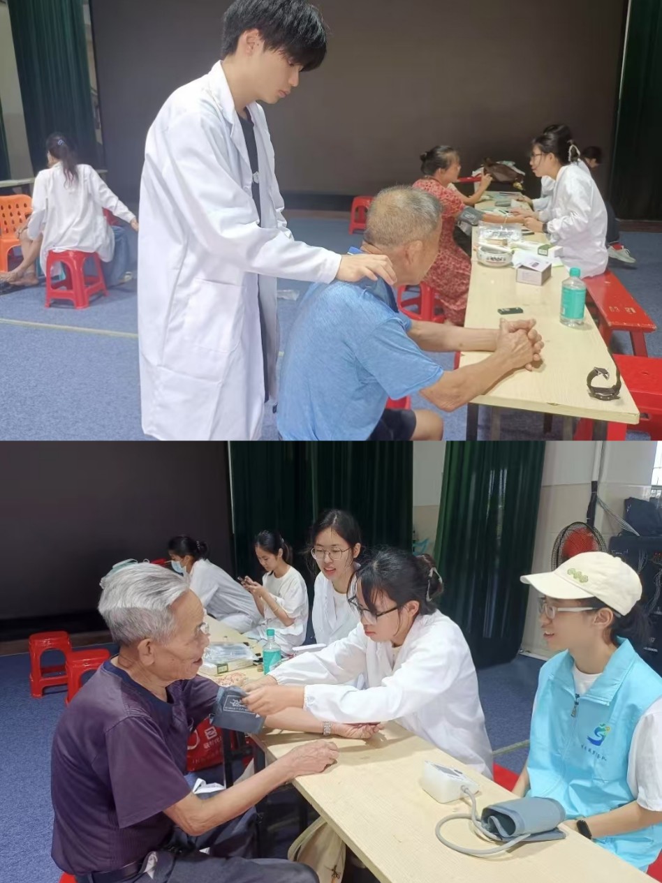 當天下午,在銅盂鎮團委干部和隊伍指導老師帶領下,隊員們帶著診療設備與宣傳資料,入戶開展服務。義診組的隊員仔細詢問居民身體與生活情況,提供個性化健康建議,老師耐心地向入戶居民講解資助政策、協助其填寫問卷,讓國家政策面對面、心貼心傳至居民院落,讓“上門服務”既有健康關懷,又有政策溫度。
