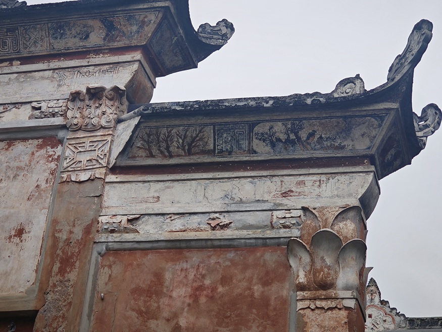 實踐成員來到現場發現,部分建筑因為存在結構安全問題已被臨時封閉,封閉區域設置了明顯的圍擋。從圍擋外圍向里望去,這些建筑的墻體存在不同程度的開裂現象,部分梁柱也有明顯的損壞痕跡。而在古建筑群的另外一些區域,部分建筑雖然整體保存狀況較好,但經過后世多次的修繕加工,添加了不少現代化的元素,與古建筑原本的磚木結構和古樸風格顯得格格不入,在一定程度上影響了整個古建筑群歷史風貌的完整性。