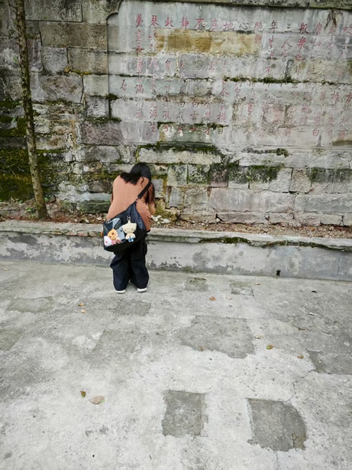 實踐成員抵達后,首先對古建筑群的整體布局進行了細致觀察,通過實地丈量、拍攝影像資料等方式,記錄下各個建筑的位置、結構及外觀特征。她沿著蜿蜒的山路,先后走訪了真武殿、文昌閣、戲樓等多處重要建筑,每到一處,都認真查看建筑的墻體、屋頂、梁柱等部分,仔細留意建筑上的雕刻、彩繪等裝飾細節,并不時記錄相關信息。